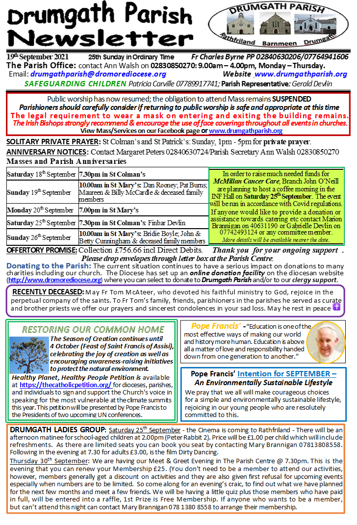 Parish Bulletin: 19 September 2021